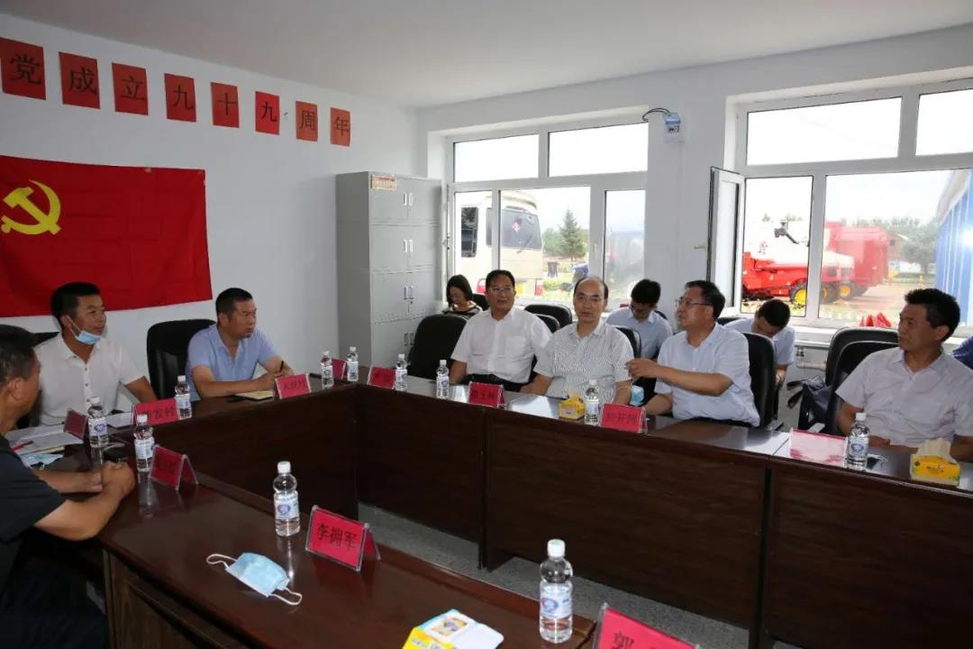 在興隆鄉新建村,焦開河聽取了大崗村、新發村和新建村關于農機服務隊項目運行情況、收益和減貧的情況介紹,詳細了解了項目幫扶機制及未來發展想法。焦開河表示,農機服務隊不僅實現了對貧困戶的幫扶,還可以通過創收、維護、解決就業,帶動農業機械化發展,是一個可持續項目。他強調,下一步要整合好各村農機服務隊,實現更大規模的連片種植。焦開河專門叮囑集團公司派駐大崗村第一書記吳寶明,要充分發揮駐村第一書記作用,抓好黨建工作,積極培育致富帶頭人,為大崗村后續發展奠定好基礎。