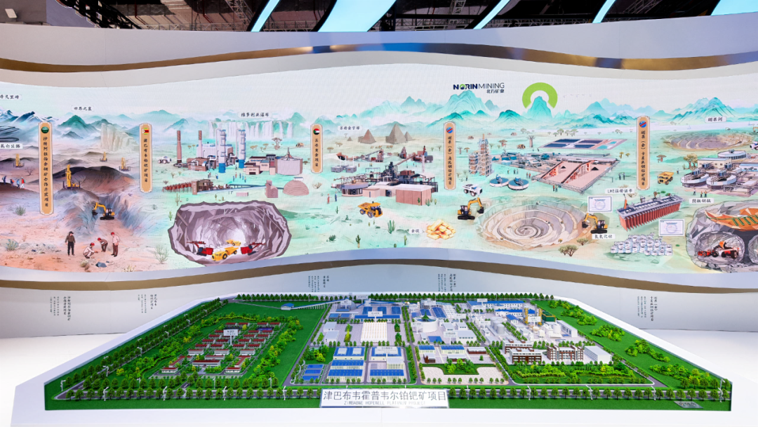 北方礦業組展展區以《千里江山圖》為創意,生動呈現了六個海外項目及礦產品貿易業務,全方位展示了智慧礦山核心構成,演繹“綠水青山就是金山銀山”的礦業新篇。