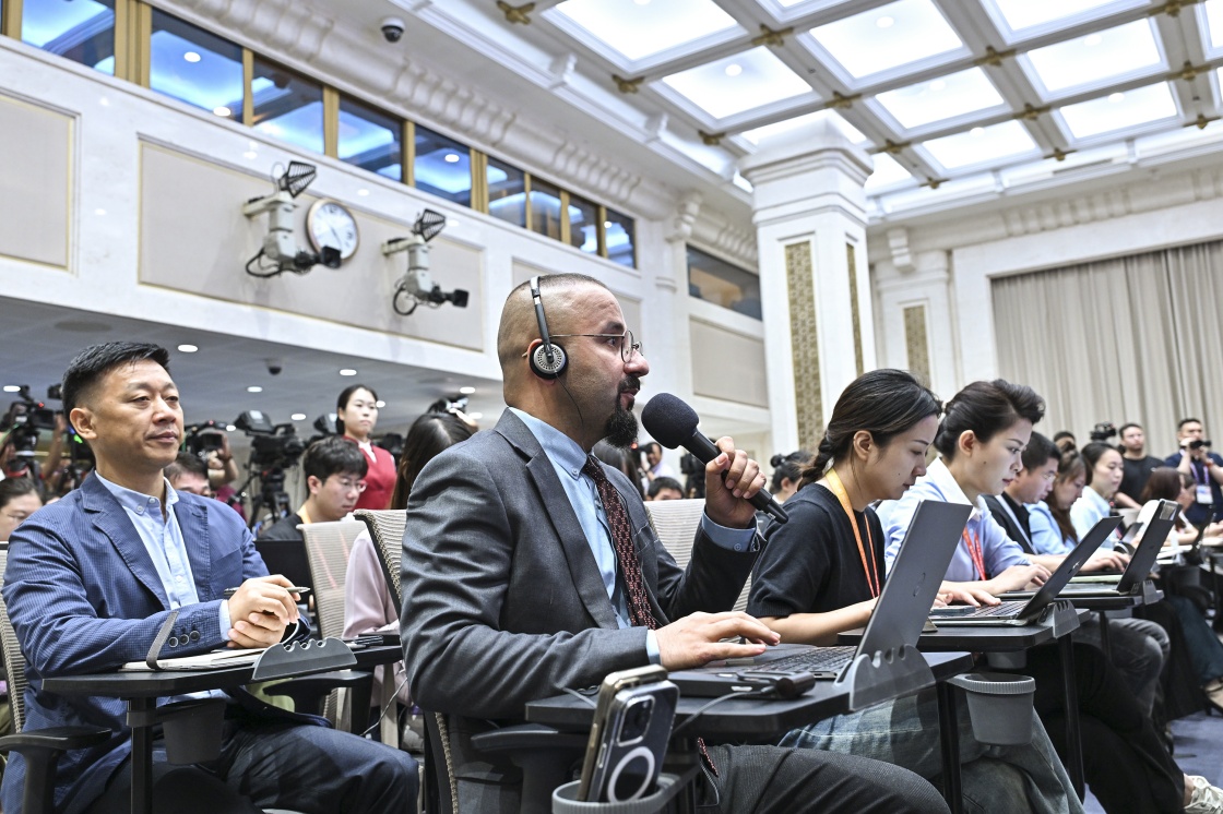 8月20日,國務院新聞辦公室在北京舉行新聞發布會,閱兵領導小組辦公室副主任、中央軍委聯合參謀部作戰局少將副局長吳澤棵,中國人民解放軍中部戰區閱兵指揮機構辦公室常務副主任、政治工作部少將副主任徐貴忠介紹閱兵準備工作有關情況,并答記者問。這是記者在現場提問。